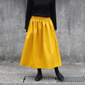シンプルで丈夫、カジュアルでもきれいめでも。上品で万能 チノクロス ギャザースカート( マスタード )ロングシーズン