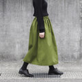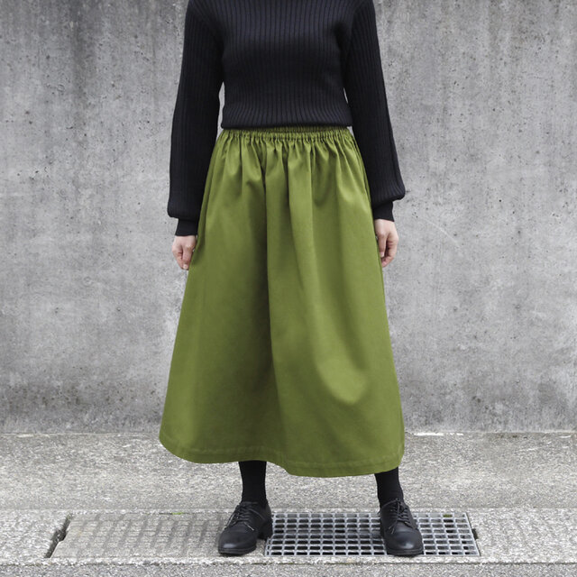 シンプルで丈夫、カジュアルでもきれいめでも。上品で万能 チノクロス ギャザースカート( モスグリーン )ロングシーズン