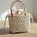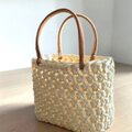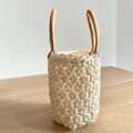 可憐な花結び編みで仕上げた、心ときめく手作りのかごバッグです。
