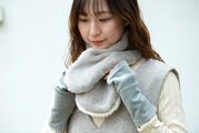 被りでなく、巻くタイプのネックウォーマーはヘアスタイルやメイクを気にせず着けられて好評。