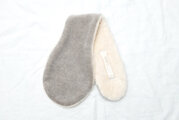 外側がグレージュ色のオーガニックコットンファー、内側は毛足の長いスーピマコットン白くまファーとなっています。