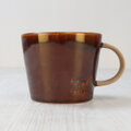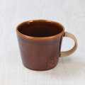 土の風合いを残しつつシックなブラウンに色付けされたカップ