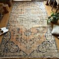 大判132×235擦れシャビーメダリオン ペールオレンジ トルコヴィンテージラグ