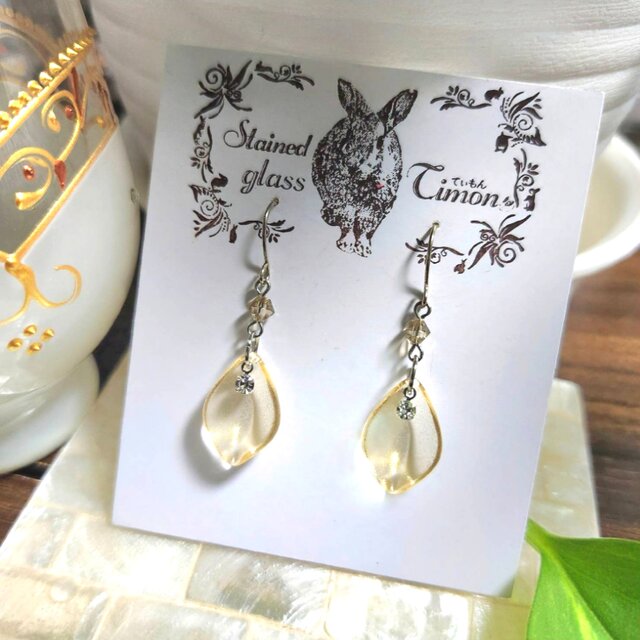 ガラスの花びらピアス❀.*・゚ グラデーションイエロー 黄色 ハンドメイド No.1882