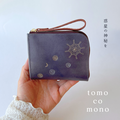 刺繍革財布『宇宙』牛革☆コンパクト型/インディゴグレイ