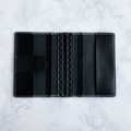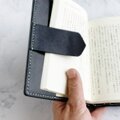 蝶番によって開く文庫本サイズのレザーブックカバーです。