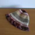 周囲55 高さ25㎝位 柔らかい段染め糸で 編みました(*^^) アクリル80、ウール20%。 手洗いできます♡