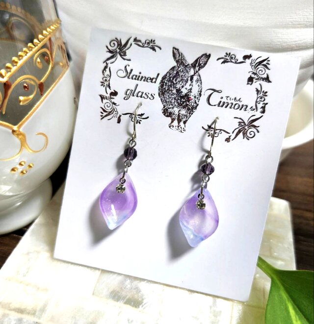 花びらピアス❀.*・゚ グラデーションブルーパープル 青紫 (こちらはパープル寄り) ハンドメイド No.1886