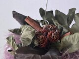 葉をアクセントにシナモンスティックや実など付けて秋らしく。