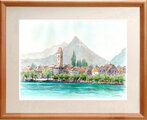 水彩画原画 夏のインターラーケン旧市街・スイス #694