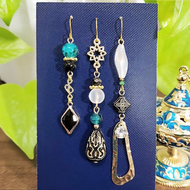 ヴィーナス★ロング エスニックデザインピス3つ穴エメラルドグリーン No.968