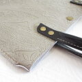 〇モスグレーのペイズリー柄の型押しが施されたレザーです♪