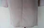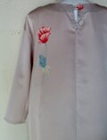 首は丸首にして、首の背中を開けて、ボタン2つで留めるようにしています。