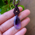 幻想的な紫のグラデーションが魅力的なインド産ファントムアメジストのマクラメ編みミニペンダントネックレスです。