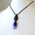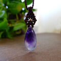 ファントムアメジスト (インド産)1点ものマクラメ編みペンダントネックレス (2月誕生石) クリスマスプレゼント 3151