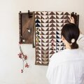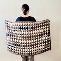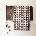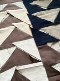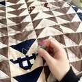 捨てられず大切にしまっていた様々な生地を三角形に丁寧に切り取り、配置を考え、縫い合わせました。