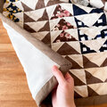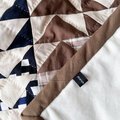 ふんわりとしたキルト綿のやわらかさや、ひと針ひと針入れた不揃いの縫い目にふと癒され、使い込むほど愛着も湧いてくるパッチワークキルト。