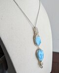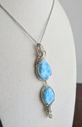 世界三大ヒーリングストーンの一つ「ラリマー」を2石繋いでペンダントトップに仕立てました。