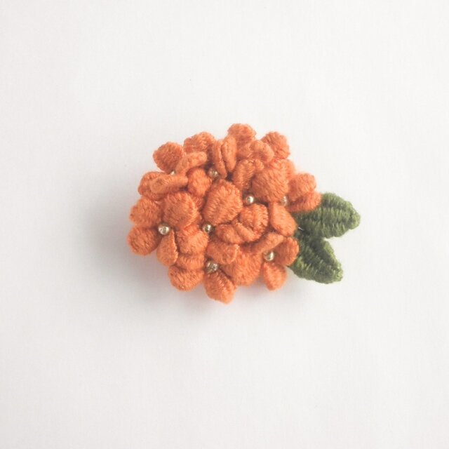 金木犀みたいなオレンジ色のお花をぎゅっと束ねたようなブローチ。