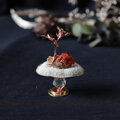 植物や鉱物など、金属ではないものの表面に電気メッキをかける技術。儚く枯れてしまう植物を金属に変えることでその時間と美しさを留めることができる、錬金術のような技法です。金属の層を厚くすることにより、強度も保たれます。