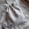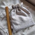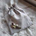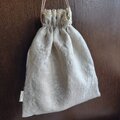 ナチュラルなリネン100%に刺繍を施した刺繍生地の巾着ポーチです。