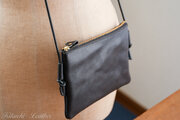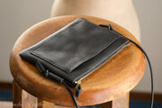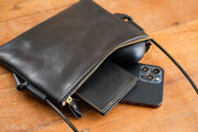 スマホと少量の荷物をスマートに持ち歩ける、横長スリムなレザーポーチです。