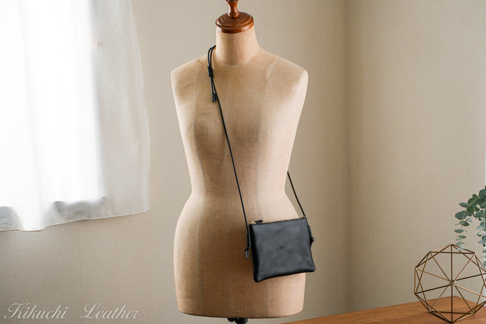 「スマホ+α」でちょっとした小物を一緒に入れて持ち歩けるよう、ミニマルなサイズ感で仕立てました。