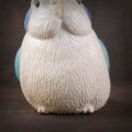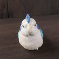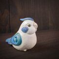 手びねりで成形しヘラでかたちを整え少し乾燥後、顔や翼を彫り込みます。細かい羽毛を線彫りするとふんわりとして見えてきます。羽の渦巻きは小さな体にみなぎる力をイメージしました。