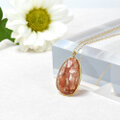 イエローゴールドの輝きが、神秘的なレッドクォーツを引き立てる、