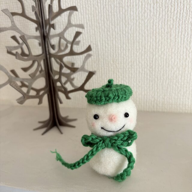 ベレー帽をかぶっておおきなリボンマフラーをつけたSnowManです。