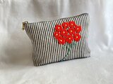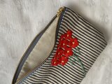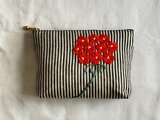 ベルギー製ストライプリネン生地にゼラニウムの刺繍がしてあります。