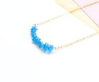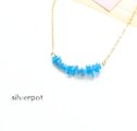 G146【宝石質ネオンブルーアパタイト】のさざれバーネックレス 鮮やかブルー チェーンの色&長さお好みでお作りします