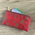【おめでた柄】畳縁 ぺたんこ ミニポーチ カードケース 小銭入れ 数珠入れ 馬 アハルテケ 赤 金 縁起物 エ霞 松竹梅