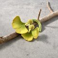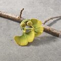イチョウの葉の黄色に色づく途中の、まだ緑色が残っている葉を布で仕立てました。