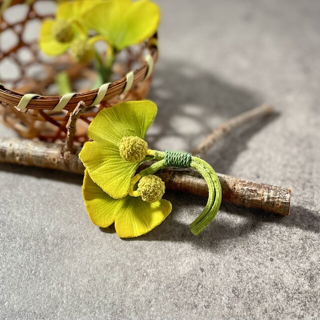 2粒の銀杏の実を付けて黄色と緑色のコントラストが可愛いブローチが仕上がりました。