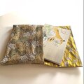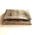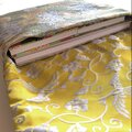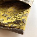 大きな柄の生地の特性は、力強さ・個性的インパクト・存在感です。織物の芸術性をそのまま大きく形に取り、品格や優美溢れる贅沢な要素をB5サイズというフレームにとらえます。大柄金襴織物が放つ「華麗・繊細・迫力」を生かし「優美で贅沢」な形を生み出す、これが作品の1テーマです。