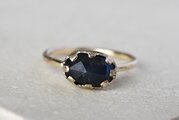 深い青色がとても綺麗です。石を囲むデザインとも合っており、気に入りました。ありがとうございました。