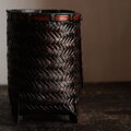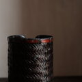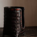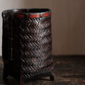 茶杯や猪口の収納に◆中国産 竹製 細工網代編 碗筒 茶杯入れ 猪口入れ 煎茶碗入 煎茶道具 古道具 古民家 i1