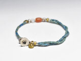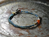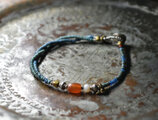シャン族ヴィンテージカーネリアン、古代瑪瑙、oldチンシルバー&オリッサブラスのアンティーク水浅葱色mixシードビーズを繋いだ華奢なブレスです。