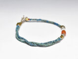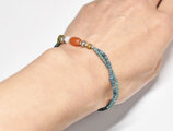シャン族ヴィンテージカーネリアン、古代瑪瑙、oldチンシルバー&オリッサブラスのアンティーク水浅葱色シードビーズの華奢なブレス