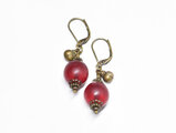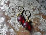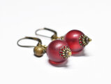 深紅アンティークボヘミアビーズと民族鈴を繋いだピアスです。