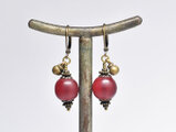 深紅アンティークボヘミアビーズと民族鈴のピアス