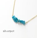 G132【12月の天然石 ターコイズ】のさざれバーネックレス ターコイズブルー チェーンの色&長さお好みでお作りします
