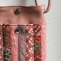 ピンクの牛革と着物生地のパッチワークと刺し子を組ませて作りました。