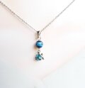 深い青色の輝きを持ち古くから「鷹の目」を象徴し全てを見通す力を授けると云われてきたブルータイガーアイ(ホークスアイ)と可愛いブルーグリーンの海亀の素敵なネックレスです。
