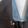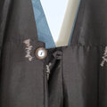 【1点もの】ジャンパースカート -絹 着物 黒に花と鳥の絣 & 絹 着物 ブルーグレー 菱紋(ヴィンテージ) JPD670
