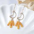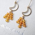 「月見団子」三日月 みたらし ピアス イヤリング 天然石 アンバー 琥珀 秋 シルバー 14kgf 金属アレルギー対応