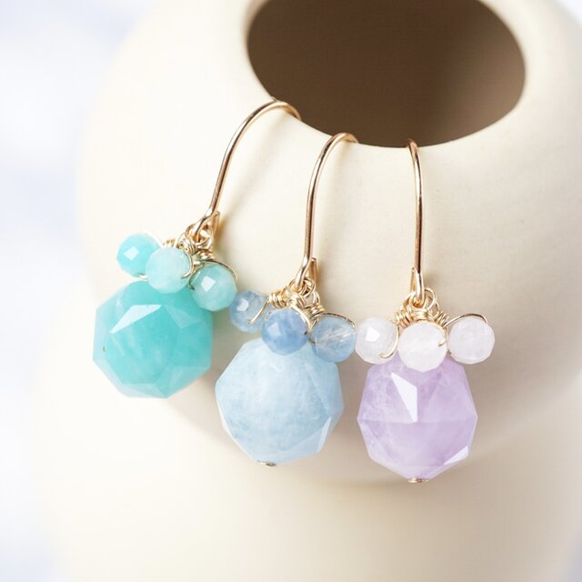 そよ風と雲の欠片、花霞を集めて。 ピアス イヤリング 天然石 誕生石 14kgf パステルカラー 金属アレルギー対応