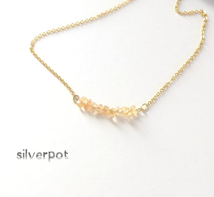 G299【天然石 インペリアルトパーズ】のさざれバーネックレス 淡いイエロー チェーンの色&長さお好みでお作りします