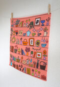 「 my favorite shelf( coral pink )」大判ハンカチ/バンダナ/ファブリックポスター